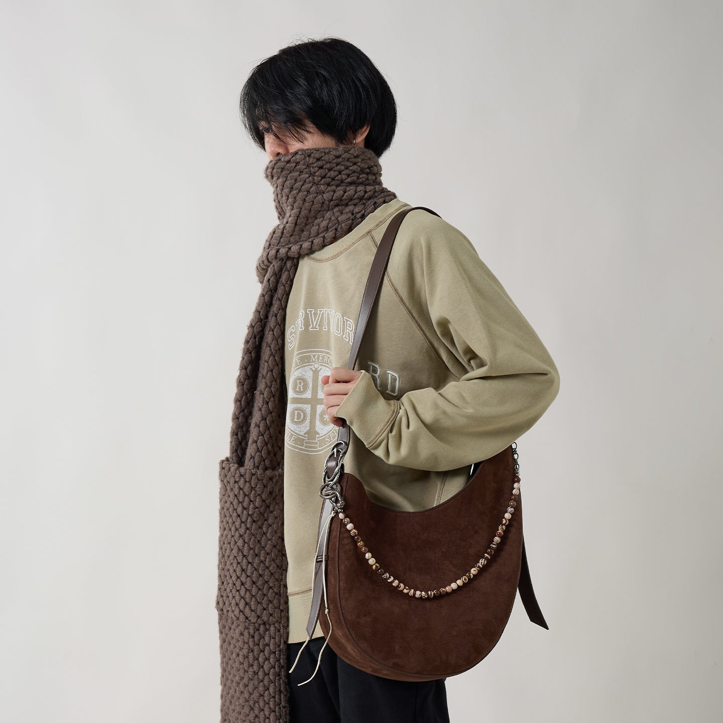 Crafted from a 360g fabric blend of 80% cotton and 20% polyester, this sweatshirt reinterprets Western-inspired elements through a story of survival and redemption.