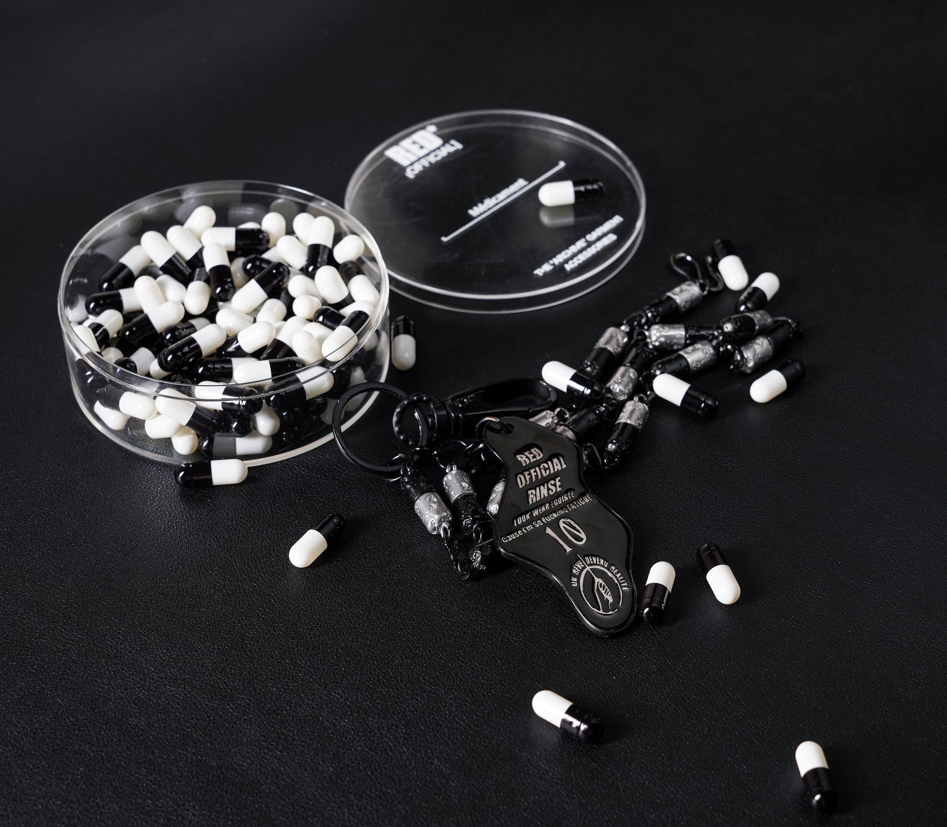 Inspired by youth culture and the concept of resisting harmful temptation, the pill-shaped design serves as a symbolic expression.