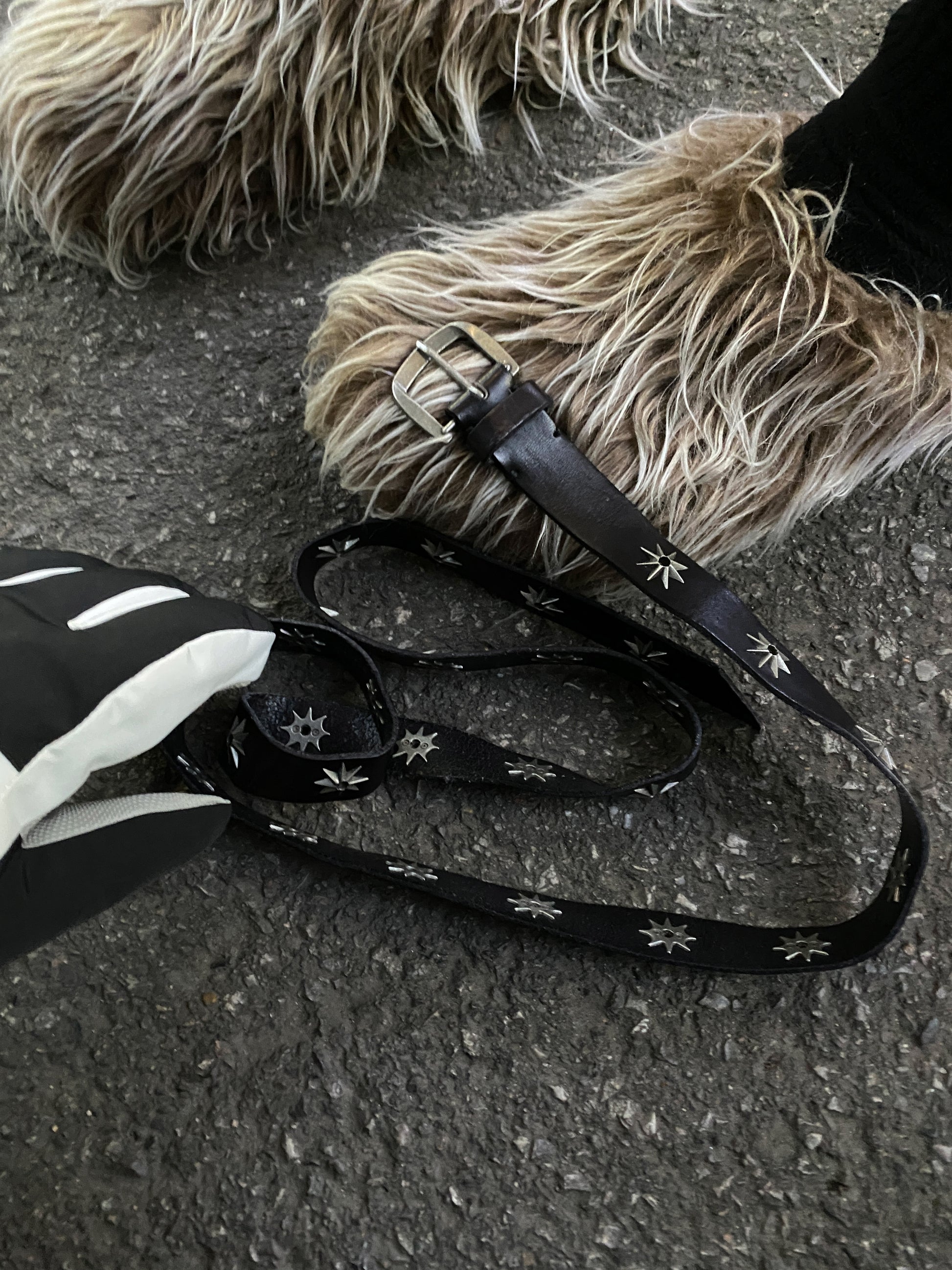 REDRINSE "STARS" Genuine Leather Star Belt – Black Calfskin Vintage Long Belt