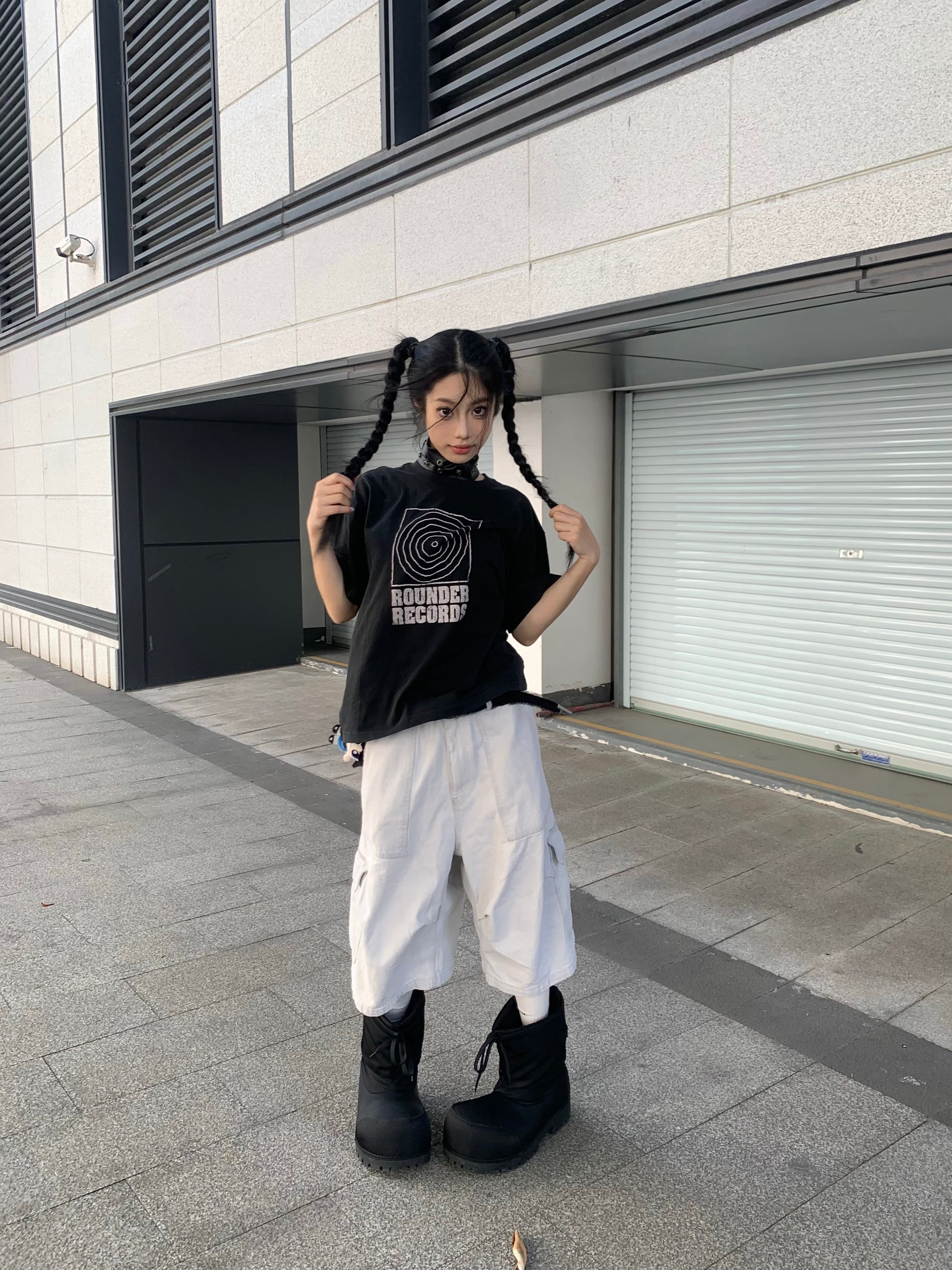 Cropped and boxy in silhouette, this piece pays homage to 1990s REMAKE culture and reinterprets the concept of “ill-fitting” garments—