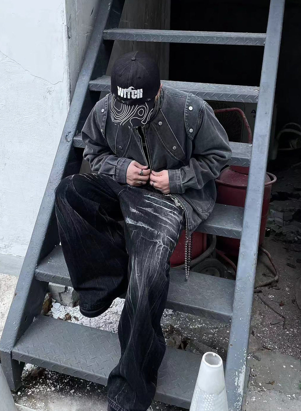 REDRINSE "Nightmare" Distressed Denim Witch Cap – Vintage American Curved-Brim Baseball Hat
